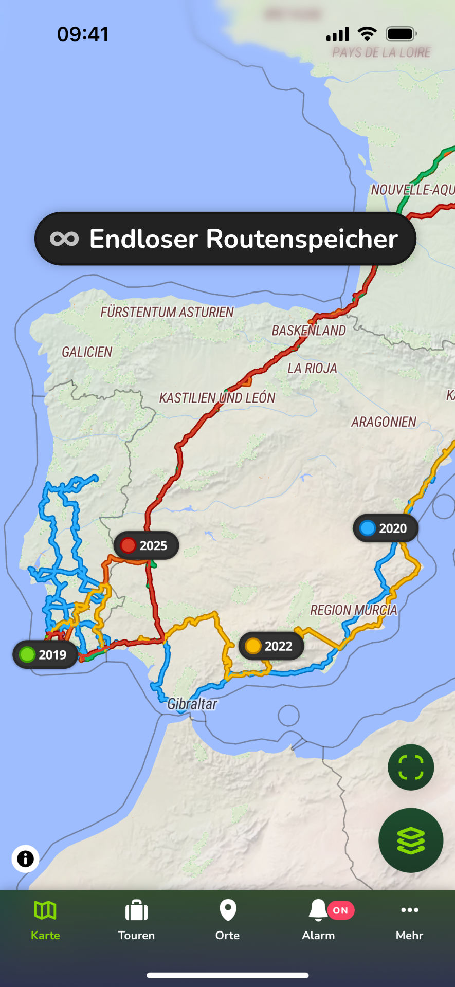 Natürlich willst du Jahre später immer noch sehen können, welche Route du in diesem einen bestimmten Urlaub gefahren bist. Deine Route wird bei trackiwi endlos gespeichert und du kannst deine Daten jederzeit herunterladen.