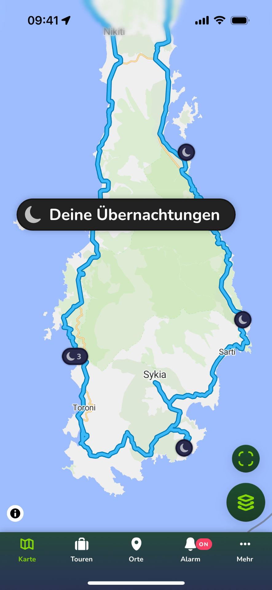 trackiwi erkennt jede Übernachtung entlang deiner Reiseroute und wird so zu deinem vollautomatischen Stellplatz-Speicher und du vergisst nie wieder einen Übernachtungsplatz.