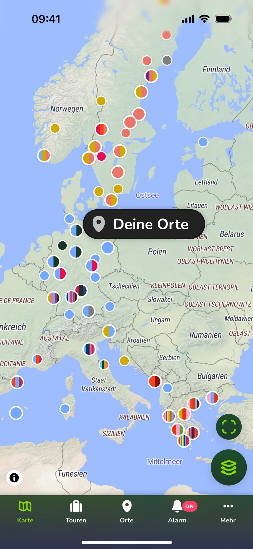 In der App kannst du dir deine Lieblingsorte abspeichern. Du entscheidest, was dir wichtig ist. Mit Freigaben kannst du markierte Orte mit Freunden teilen oder auf deiner Website veröffentlichen.