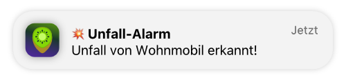 Sobald der Alarm auslöst erhältst du eine Meldung ("Unfall-Alarm") auf alle eingeloggten Geräte.