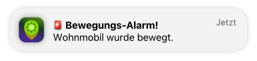 Sobald der Alarm auslöst erhältst du eine Meldung ("Bewegungsalarm") auf alle eingeloggten Geräte. Außerdem erhältst du alle 3 Minuten eine weitere Alarmmeldung bis du die Alarmanlage deaktivierst, sich das Fahrzeug wieder innerhalb des Radius befindet oder seit dem Verlassen des Radius 6 Stunden vergangen sind.