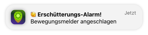 Sobald der Alarm auslöst erhältst du eine Meldung ("Erschütterungsalarm") auf alle eingeloggten Geräte. Nach 60 Sekunden ohne Schwankung setzt sich der Alarm dahingehend zurück, dass er erneut auf Schwankungen von mindestens 10 Sekunden reagieren kann.