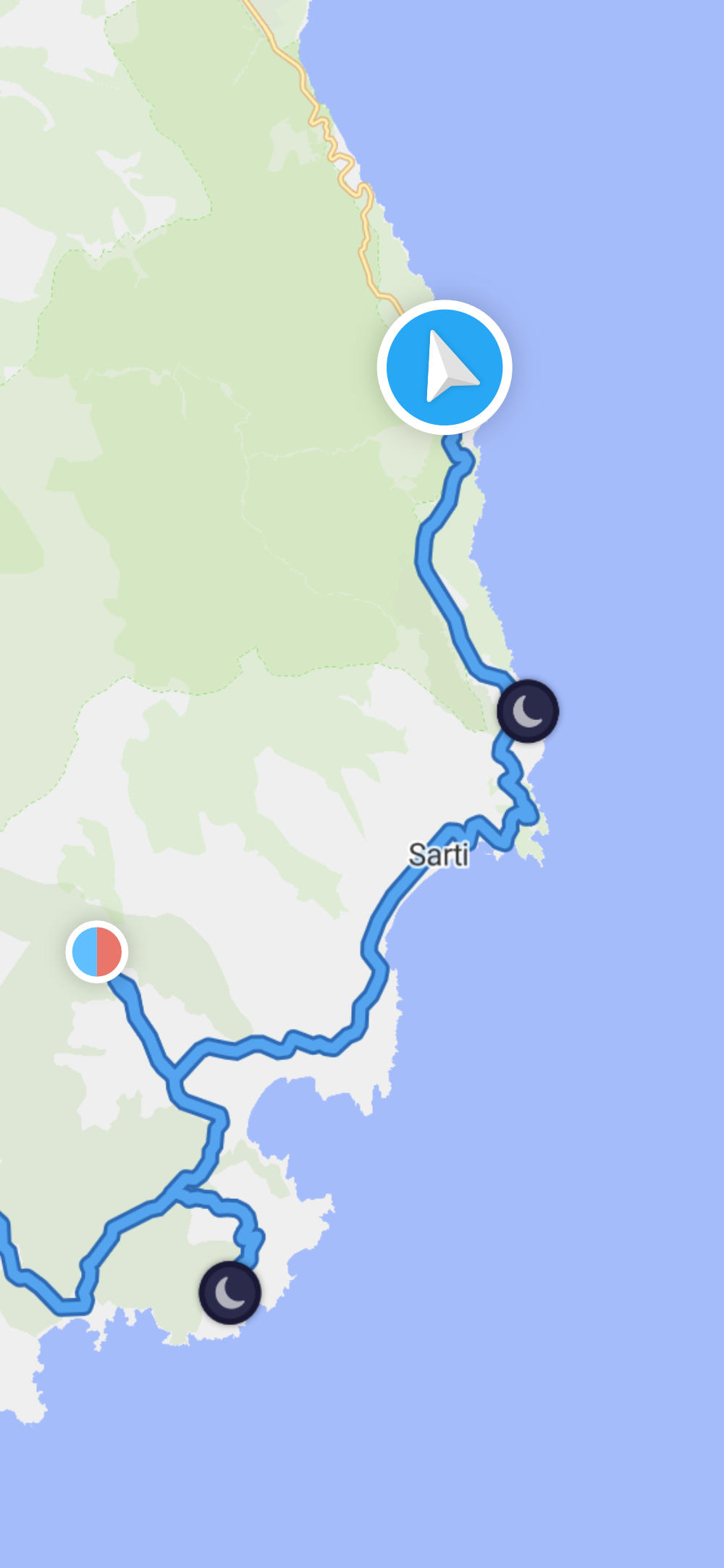 Durch Tippen auf einen beliebigen Punkt der Route öffnet sich ein Popup-Fenster, das Details zum gewählten Routenpunkt anzeigt. Du siehst in dieser Ansicht, zu welchem Zeitpunkt du hier gewesen bist, auf wie viel Höhenmetern du warst und wie schnell du gefahren bist.