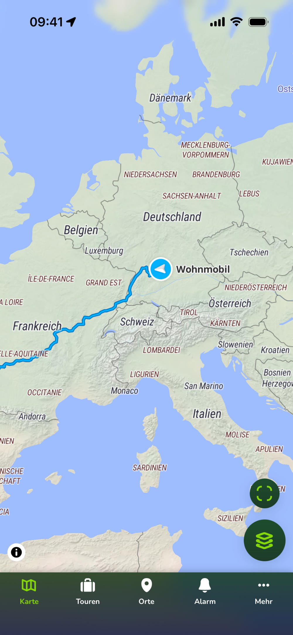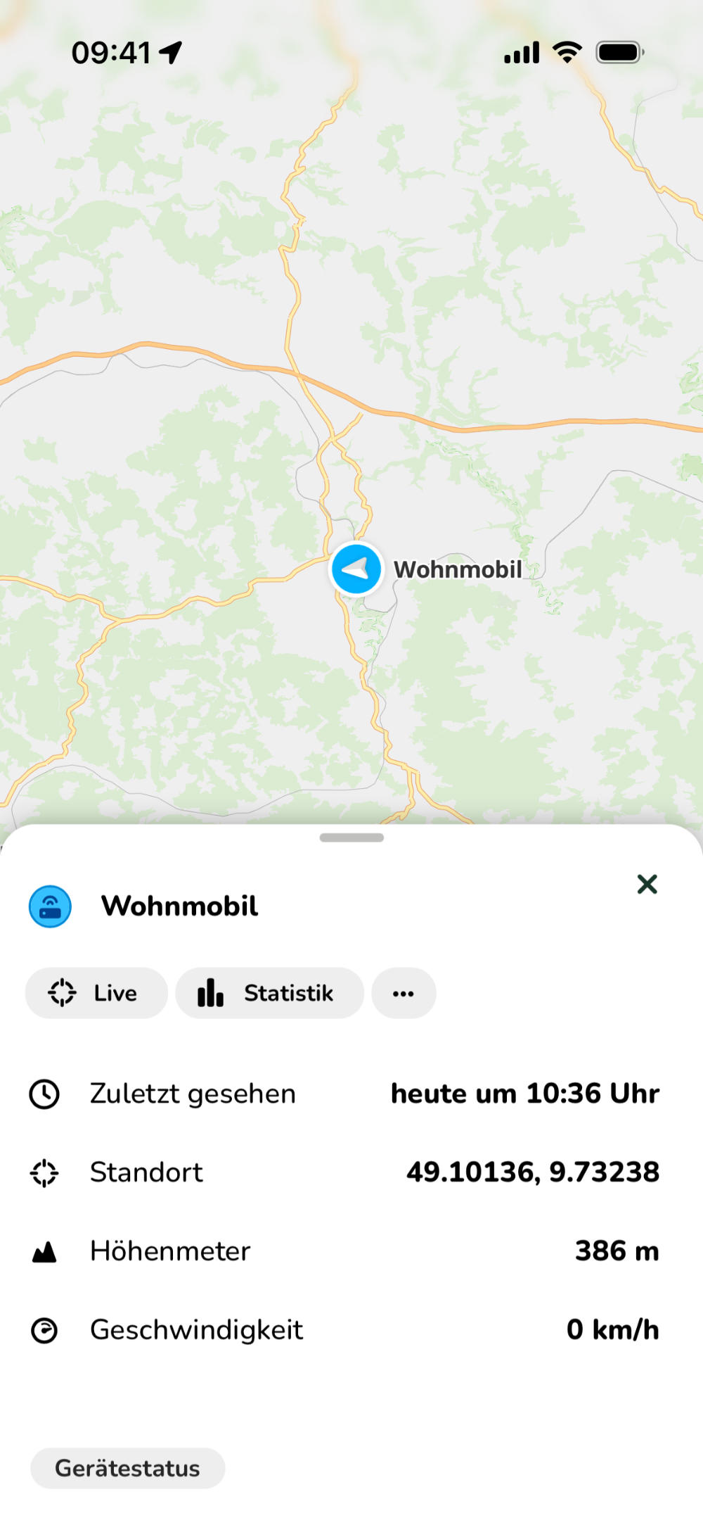 Um die Kartenansicht auf die Position deines Trackers zu zentrieren, tippe die Zentrier-Schaltfläche