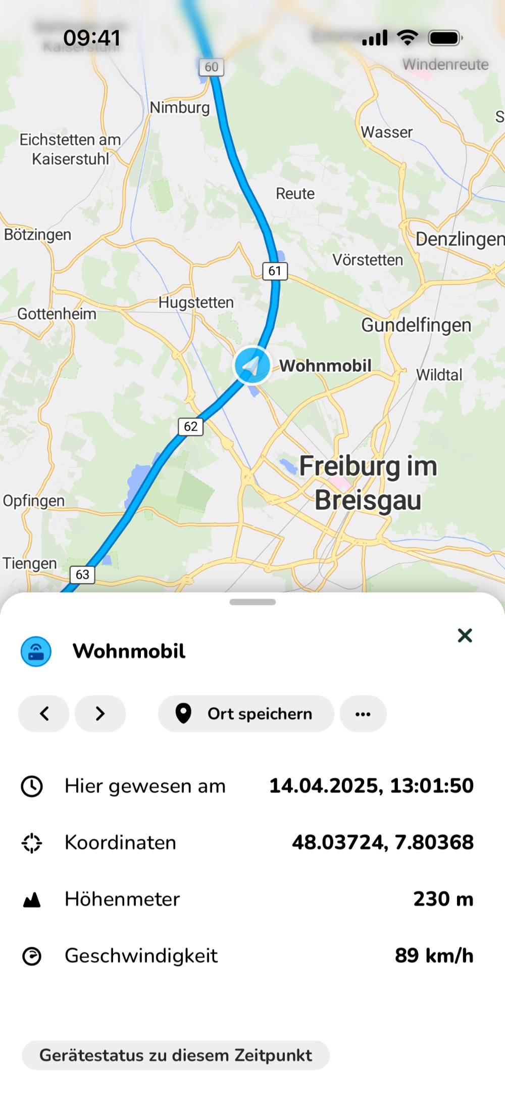 Die Anzeige des aktuellen Standortes des Trackers muss aktiviert sein (siehe Karten-Einstellungen).