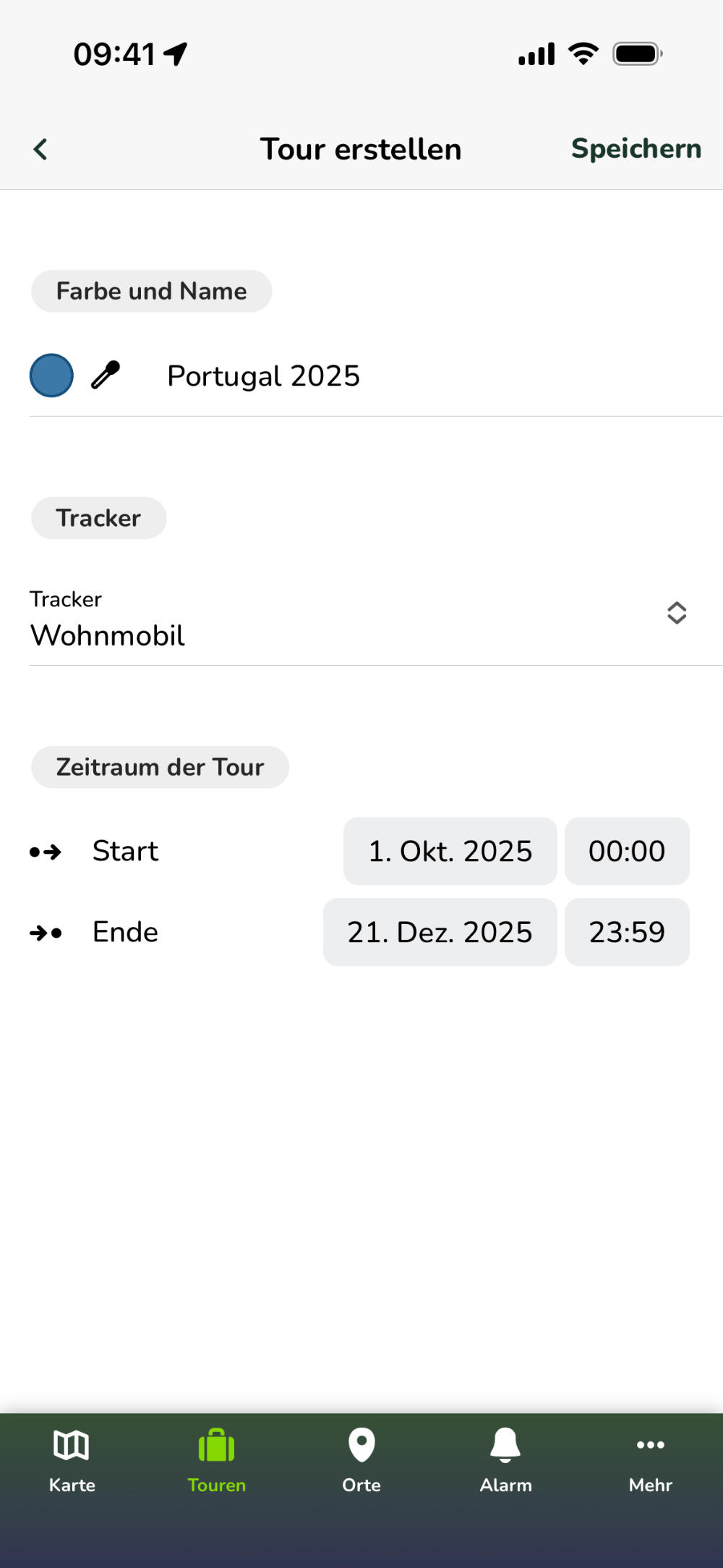 Tippe auf dem Reiter "Touren" auf das "Plus"-Symbol oben rechts, um eine neue Tour zu erstellen. Es öffnet sich die folgende Ansicht: