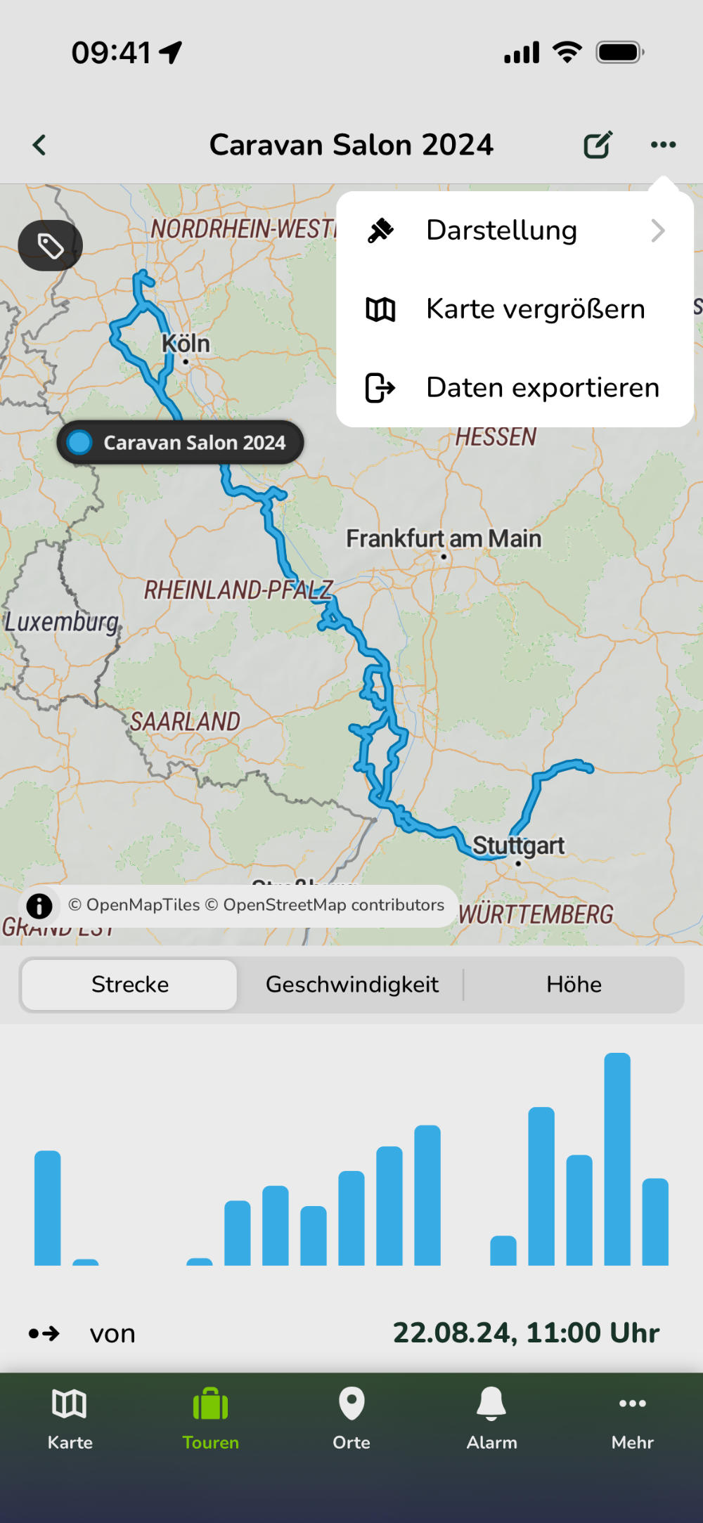 Tippe in der Tour-Ansicht die "..."-Schaltfläche 2.2 oben rechts, um weiterführende Optionen zu erhalten.