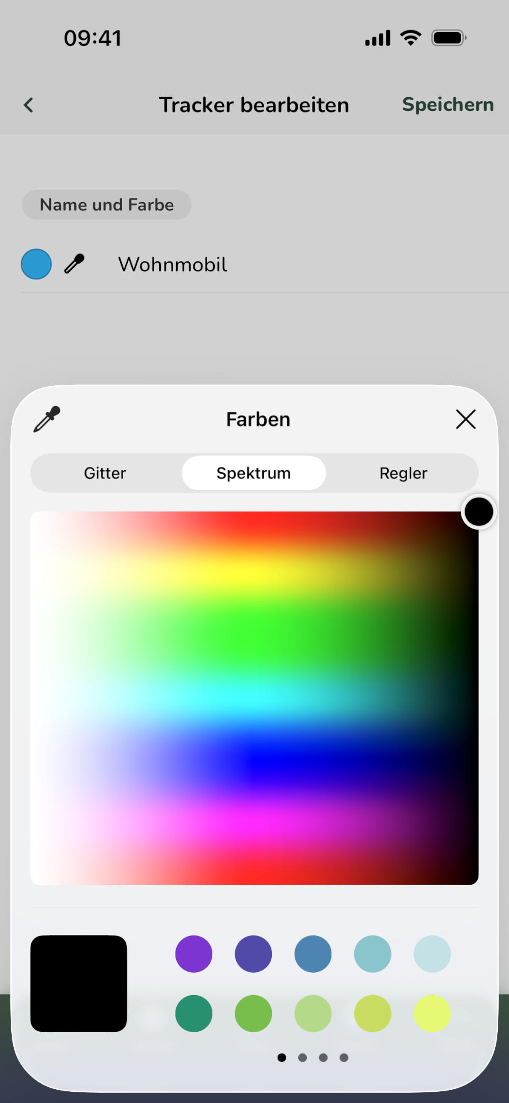 Du kannst den Namen 1.1 sowie die Farbe 1.2 des Tracker bearbeiten.