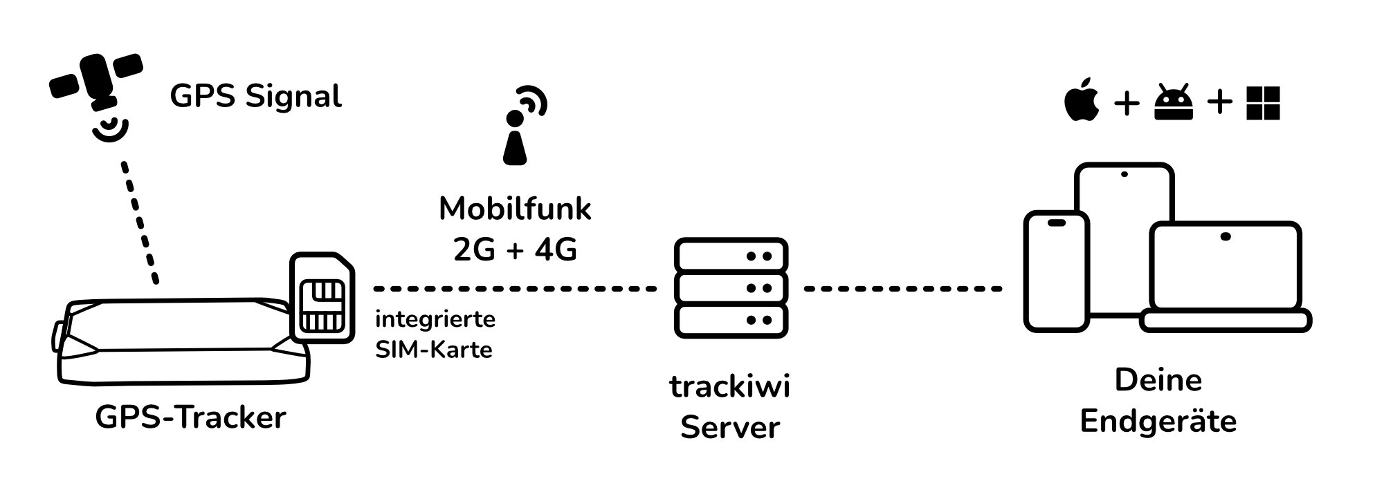 Der GPS-Tracker zeichnet alle Fahrten kontinuierlich auf, solange Stromversorgung und GPS-Empfang vorhanden sind. Über die eingebaute SIM-Karte übermittelt der Tracker seine Daten an den Server.