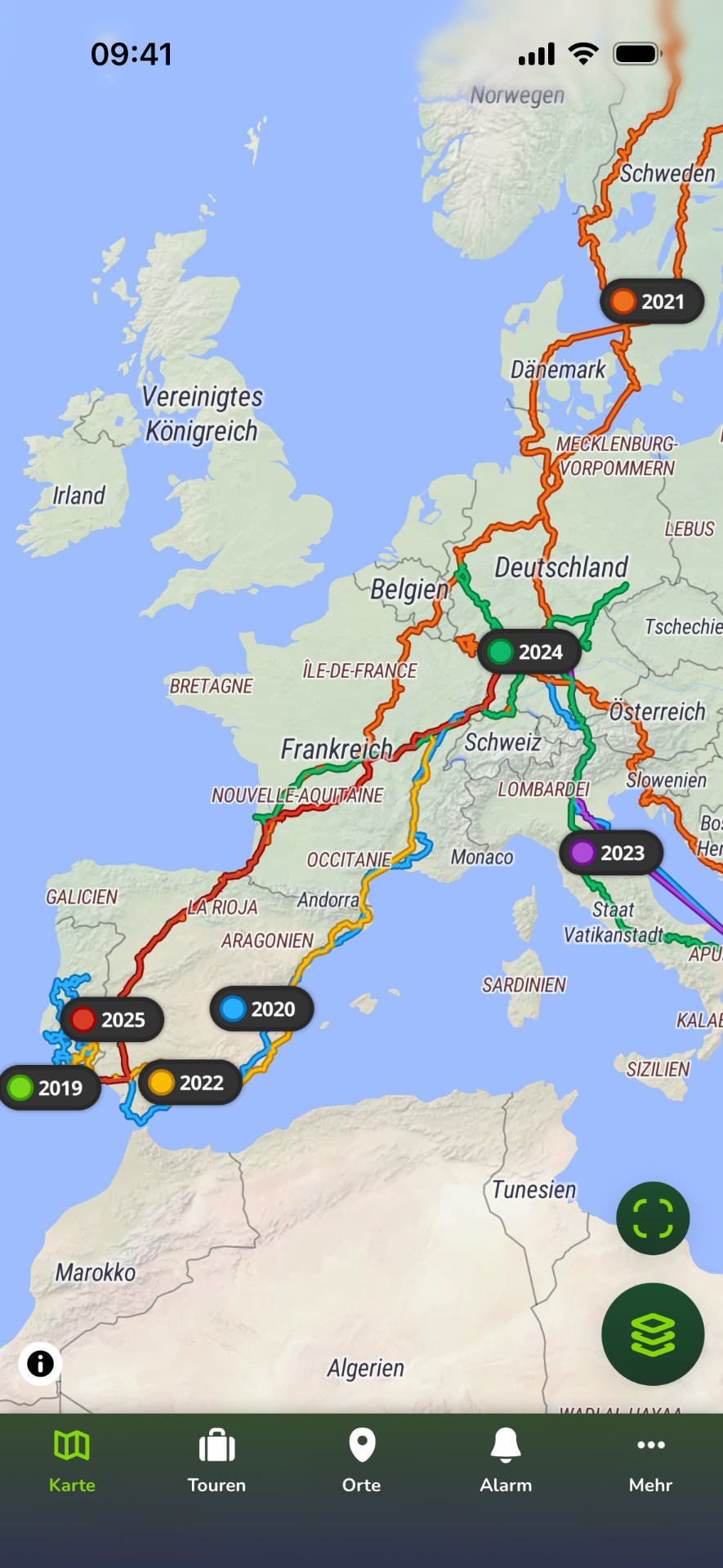 Mit trackiwi siehst du auch Jahre später noch, welche Route du in diesem einen bestimmten Urlaub gefahren bist. Deine Route wird präzise und endlos gespeichert und du kannst deine Daten jederzeit herunterladen.