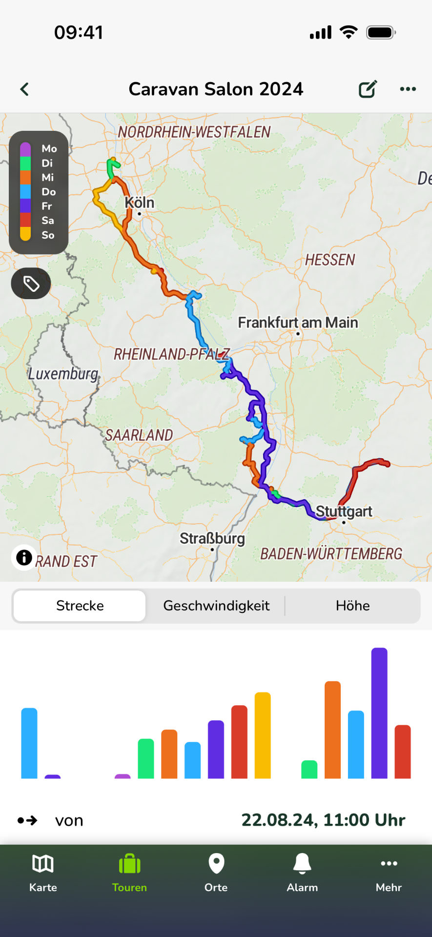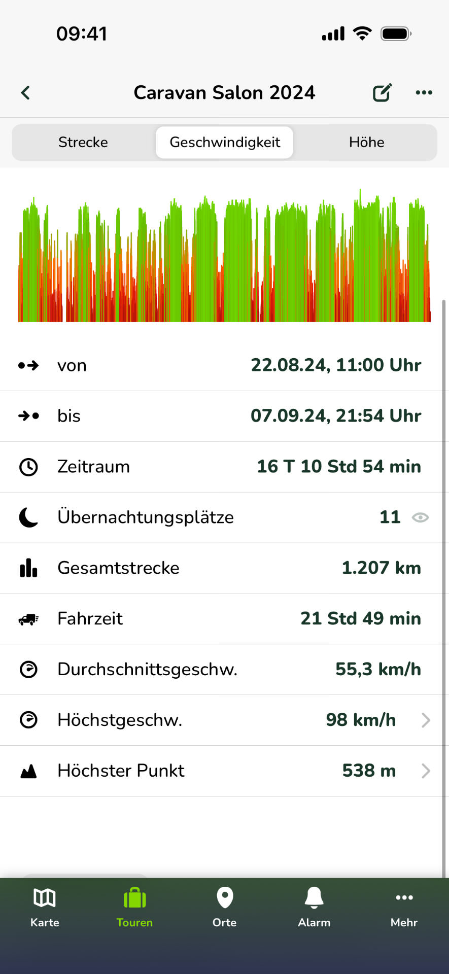 Durch die integrierten Tools zur Analyse deiner Routendaten erhältst du spannende Einblicke rund um deine Reise und dein eigenes Reiseverhalten.